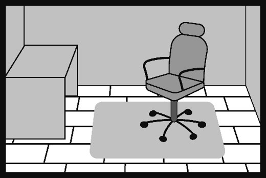 3. Фотьойли и други мебели с твърди пластмасови колелца трябва да се използват върху пластмасови защитни постелки. Ако не се използват защитни постелки, заменете ги с колелца, предназначени за твърди подове, тип W.