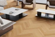Дъбова подова настилка в класическа шарка тип „рибена кост“, с прозрачен финиш, съчетава деликатна елегантност с естествения характер на дървесината.