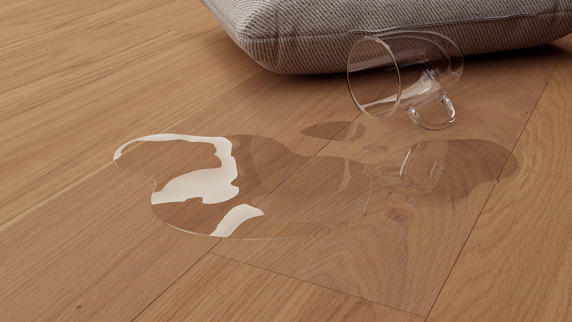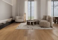 Дъбовата подова настилка в светъл бежово-сивкав нюанс съчетава модерна изтънченост с естествения характер на дървото. Неутралният, приглушен цвят създава елегантен фон, който пасва на множество интериорни стилове.